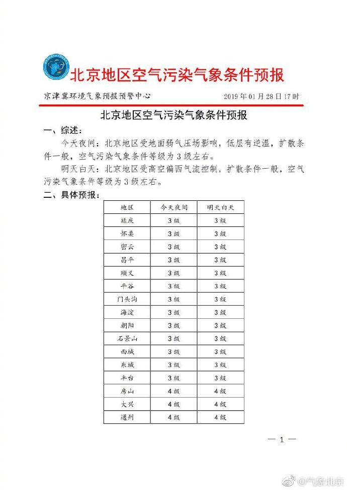 今夜起北京扩散条件较不利,有轻度污染,明天白天继续变差,空气质量指数170至190,达中度污染,出行注意戴口罩。