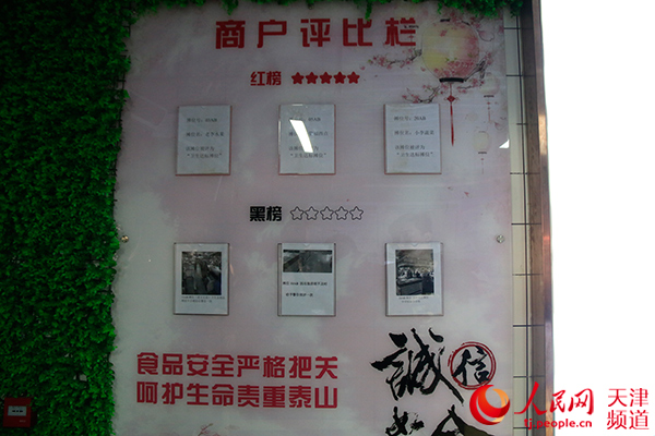 在市场的出入口,商户评比栏、电子触摸屏这些很少会在菜市场里出现的物品格外显眼。“电子触摸屏会显示商户基本信息,也可以导购,为市民群众提供方便。商户评比栏,是一个‘红黑榜’,通过评比和顾客举报,卫生达标的商户会上红榜,而卫生不达标、经营不诚信的商户就会上黑榜,使进场的市民群众一目了然。”宜景菜市场负责人介绍说。