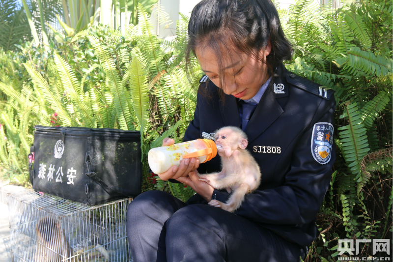 央广网普洱2月15日消息(记者李腾飞 通讯员何有刚 毕晓东 王晶)春节前夕,云南省澜沧县,糯福边境派出所民警解救了两只国家一级保护野生动物豚尾猴幼崽,随后把它们移交给澜沧县森林公安局。
