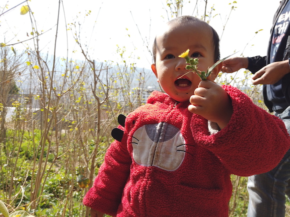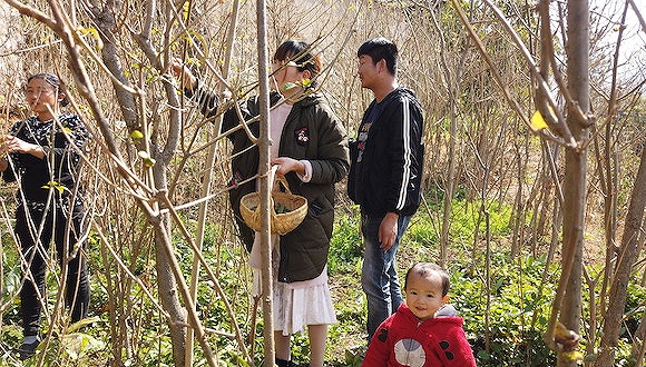 娇子一家饭前去院外摘野菜