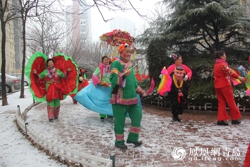 2月19日上午10点,云南路小区9号楼门前小广场热闹非凡。由社区居民自发形成的秧歌锣鼓队正在为周边居民带来一场精彩的民俗表演。扭秧歌、划旱船、锣鼓等多种表演节目依次亮相,用喧天的锣鼓、热情的秧歌表达内心的喜悦、迎接元宵节的到来。精彩的表演赢得现场观众的阵阵掌声。