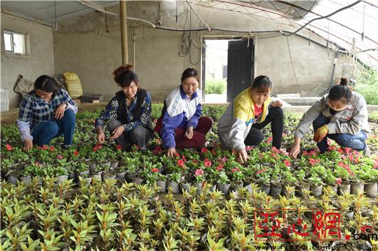 笔者在位于和静县额勒再特乌鲁乡的嘉禾花卉种植专业合作社的花卉大棚里看到, 10余名工人正忙碌着进行移苗、栽苗,大棚基地一片生机盎然的景象。