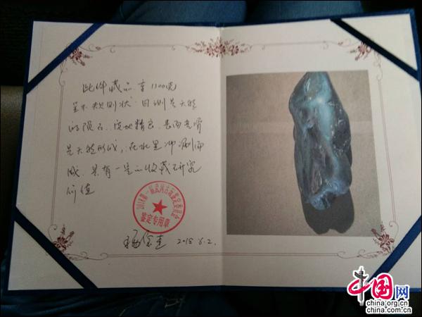 鉴定会是由邵阳市文学艺术界联合会、邵阳市艺术收藏家协会、北京市慕名世纪文物鉴定有限公司、武冈市艺术界联合会、武冈市古玩收藏协会等十一家单位联合举办的央视专家鉴定会。绥宁县两件奇石作品倍受专家青睐,其中杨焕腾收藏的"岁月流痕"奇石、滕永明收藏的天外之物陨石等两件奇石,分别得到文物、玉石、杂项鉴定专家杨宝杰、张如兰等专家的肯定和好评。