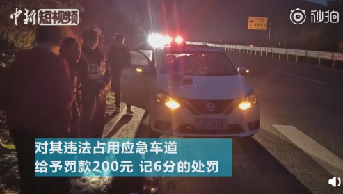 执法人员对3人进行了严厉的批评教育,并对驾驶员违法占用应急车道给予罚款200元,记6分的处罚。另有媒体报道,驾驶员面对执法人员时表示:“没想到你们来得这么快,还没吃完”。