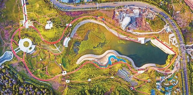 位于两江新区悦来的会展公园,雨水花园起到雨水滞留、缓排、净化的作用。记者 张锦辉 廖雪梅 摄
