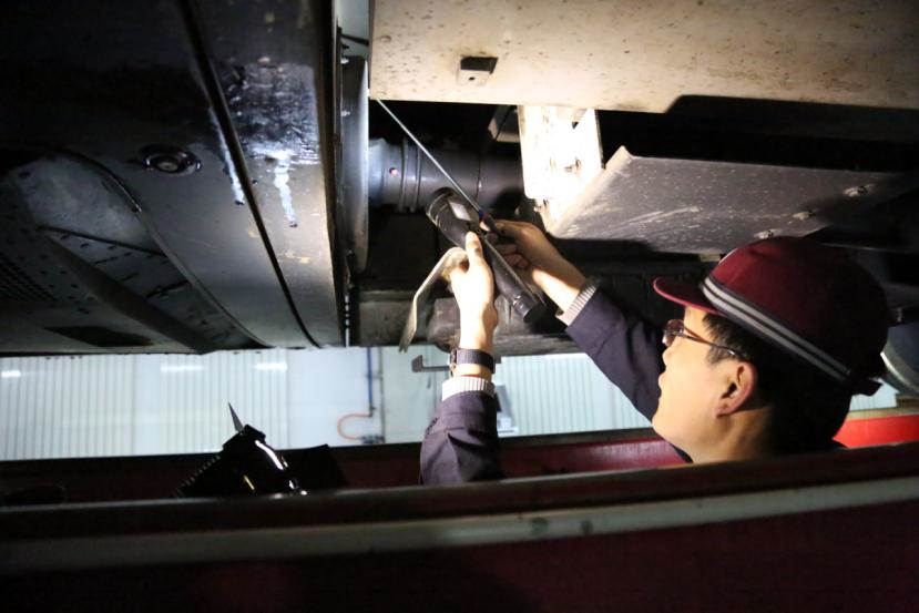 动车“医生”检查车下悬吊装置 朱亮/摄