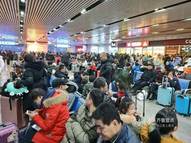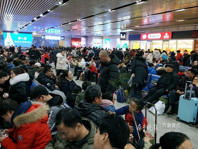 在候车室里,同样是人满为患,许多老家济南在异地工作的人也选择在初五返程,准备上班。