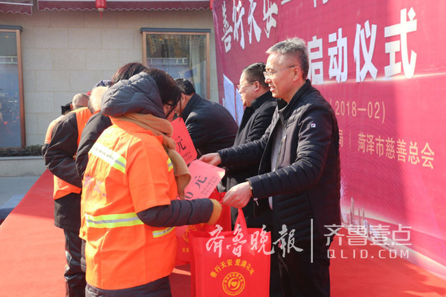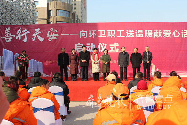 6日上午,为倡导慈善风尚,弘扬中华美德,共建美好菏泽,菏泽市民政局、市城管局、市慈善总会、山东天安集团联合开展“善行天安”——向环卫职工送温暖献爱心活动。