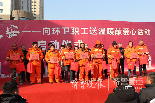 “‘担当社会责任、积极回报社会’是我们集团公司的发展原则。这次我们为环卫工人献爱心、送温暖,让他们感受到我们的关爱,今后,我们将一如既往的做好社会慈善事业,更加关注需要帮助的群体,为他们献出我们的爱心。”启动仪式上,山东天安集团副总经理刘军说道。