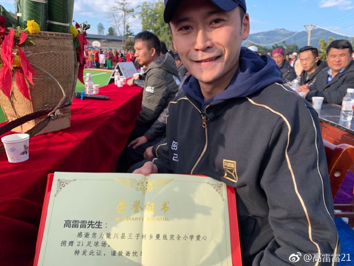 虎扑12月29日讯 昨天,云南陇川曼线21球场正式竣工,足坛老将高雷雷微博晒出了由他所捐赠云南陇川县“21球场”的美丽照片。自2007年开始,高雷雷便积极投身足球公益事业,11年间,他捐赠建成的“21球场”已达十余座;截止今年,已向贫困地区捐款超400万元。
